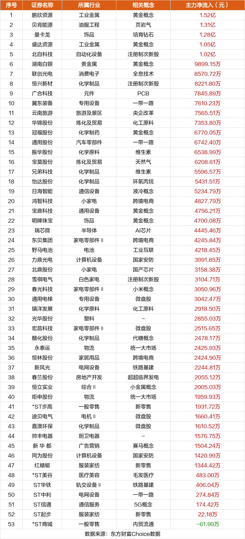 非连板个股方面,鹏欣资源、贝肯能源、曼卡龙主力资金净流入居前。