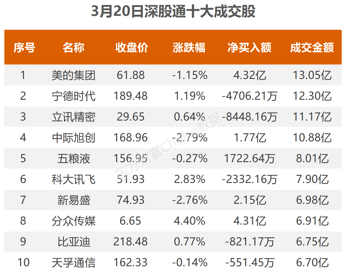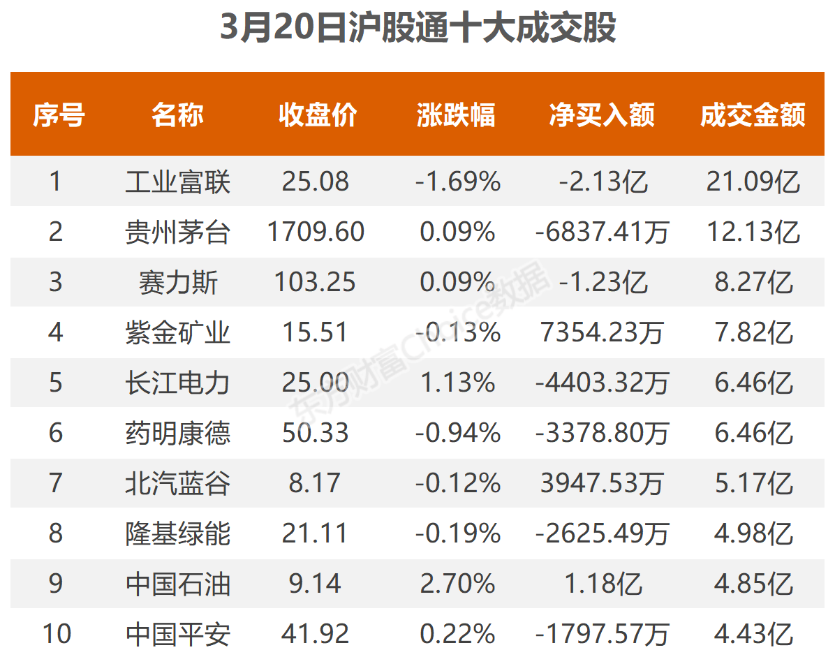 乐借贷 3月20日北向资金最新动向(附十大成交股)