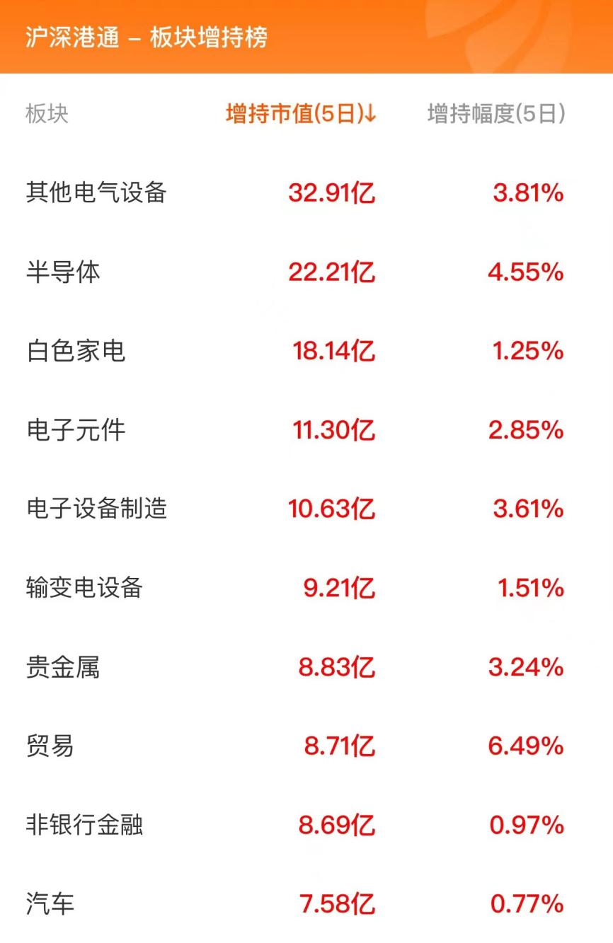 北向资金板块增持榜